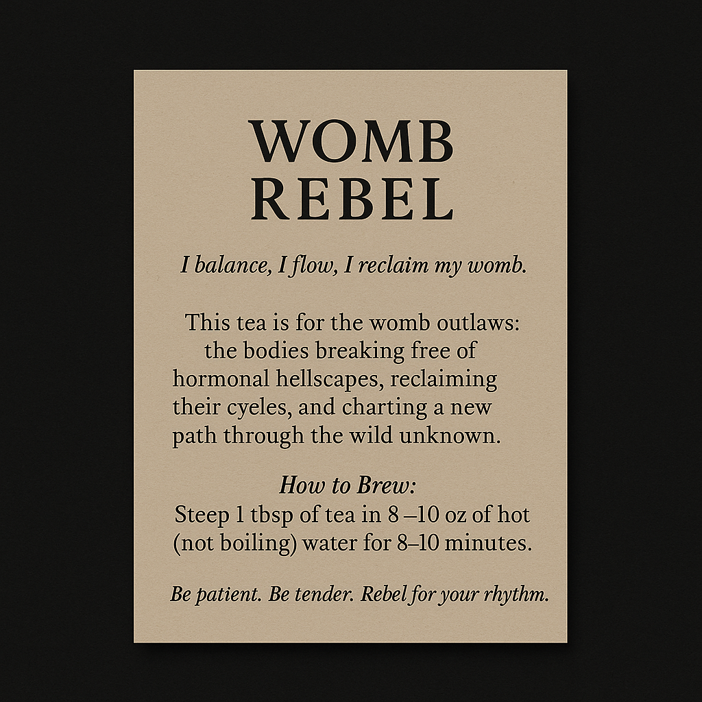 Womb Rebel is your daily botanical defiance — crafted for the cycles that ghost you, the bloating that overstays, and the hormones that do whatever the hell they want. Whether you're navigating PCOS, irregular periods, or a hormonal hellscape with no map, this blend is here to help you reclaim rhythm without restriction.